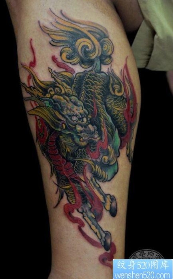 男性喜欢的腿部霸气的麒麟纹身图片_麒麟纹身图案大全_纹身图吧