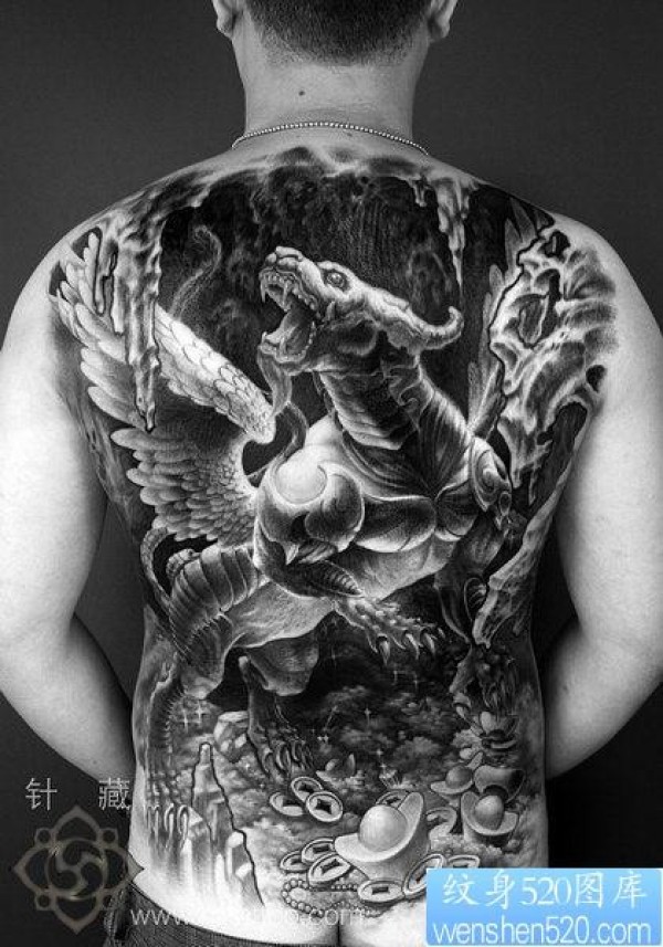 霸气的满背招财神兽貔貅纹身图片_麒麟纹身图案大全_纹身图吧