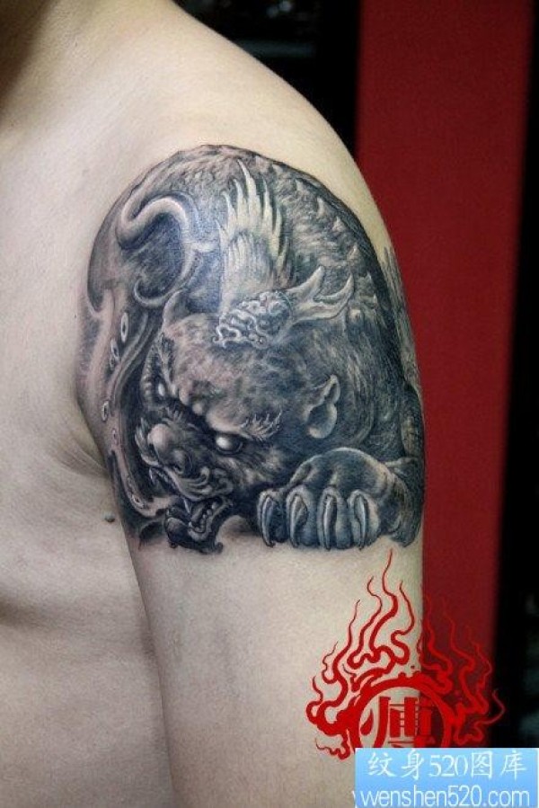 男生手臂帅气超酷的神兽貔貅纹身图片_麒麟纹身图案大全_纹身图吧
