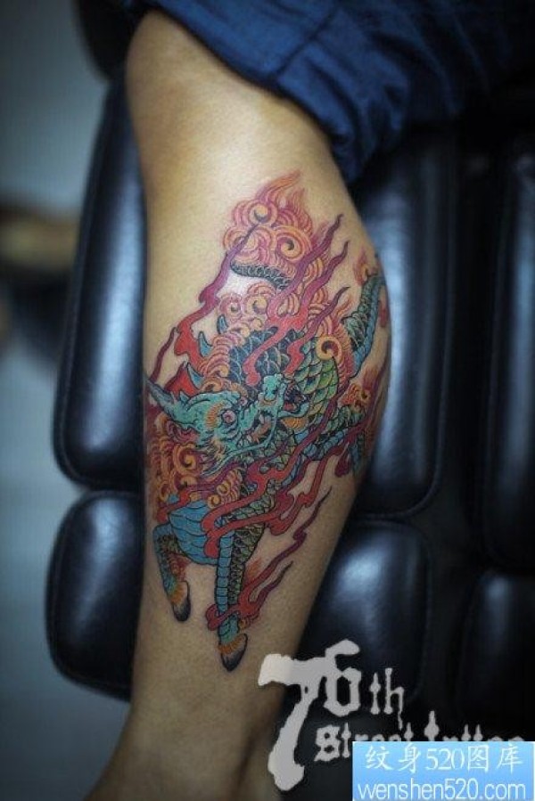 腿部前卫超酷的麒麟纹身图片_麒麟纹身图案大全_纹身图吧