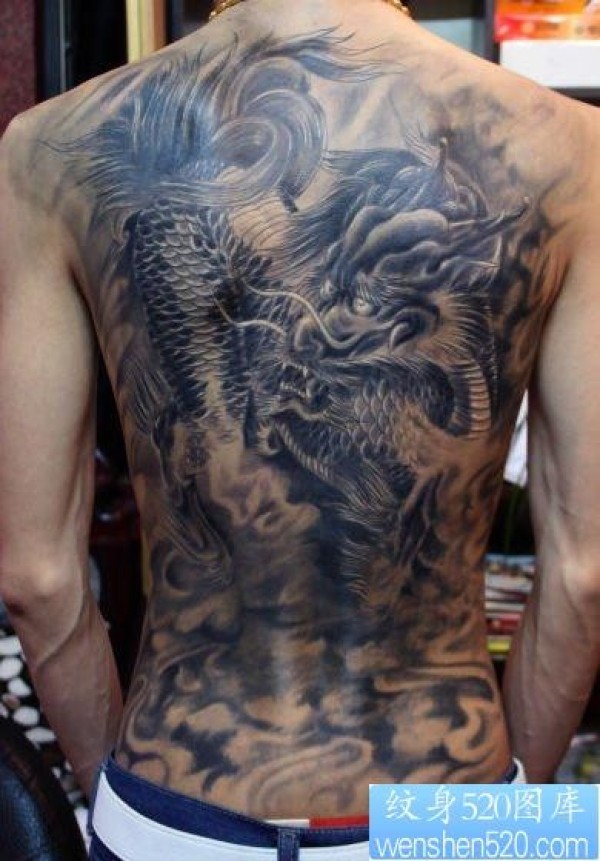 超帅的满背黑灰麒麟纹身图片_麒麟纹身图案大全_纹身图吧