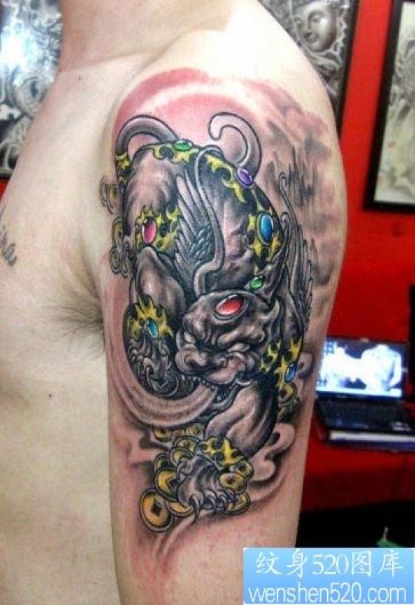 手臂好看的招财神兽貔貅纹身图片_麒麟纹身图案大全_纹身图吧