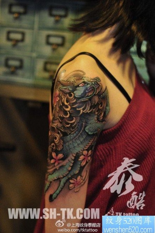 女人手臂经典好看的彩色麒麟纹身图片_麒麟纹身图案大全_纹身图吧