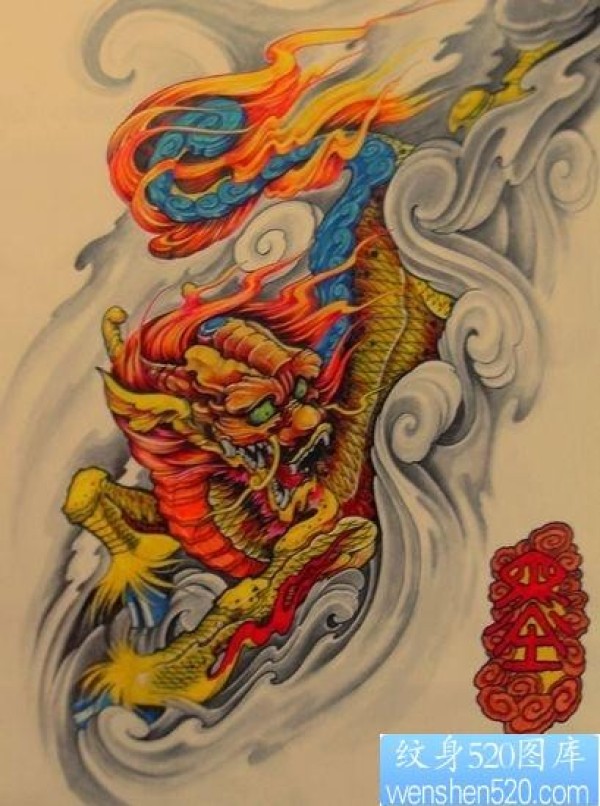 火麒麟纹身图案及其意义_麒麟纹身图案大全_纹身图吧