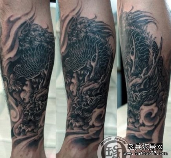 腿部超酷的神兽麒麟纹身图片_麒麟纹身图案大全_纹身图吧