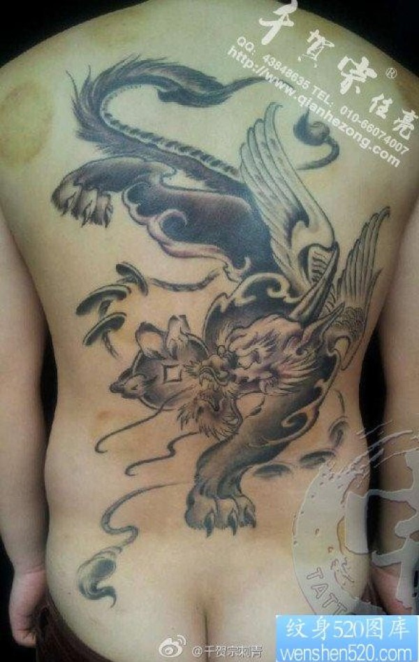 帅气的背部麒麟送子纹身图片_麒麟纹身图案大全_纹身图吧