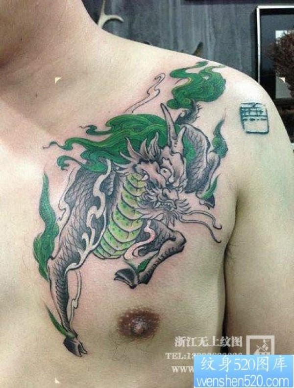 男生前胸霸气超酷的麒麟纹身图片_麒麟纹身图案大全_纹身图吧