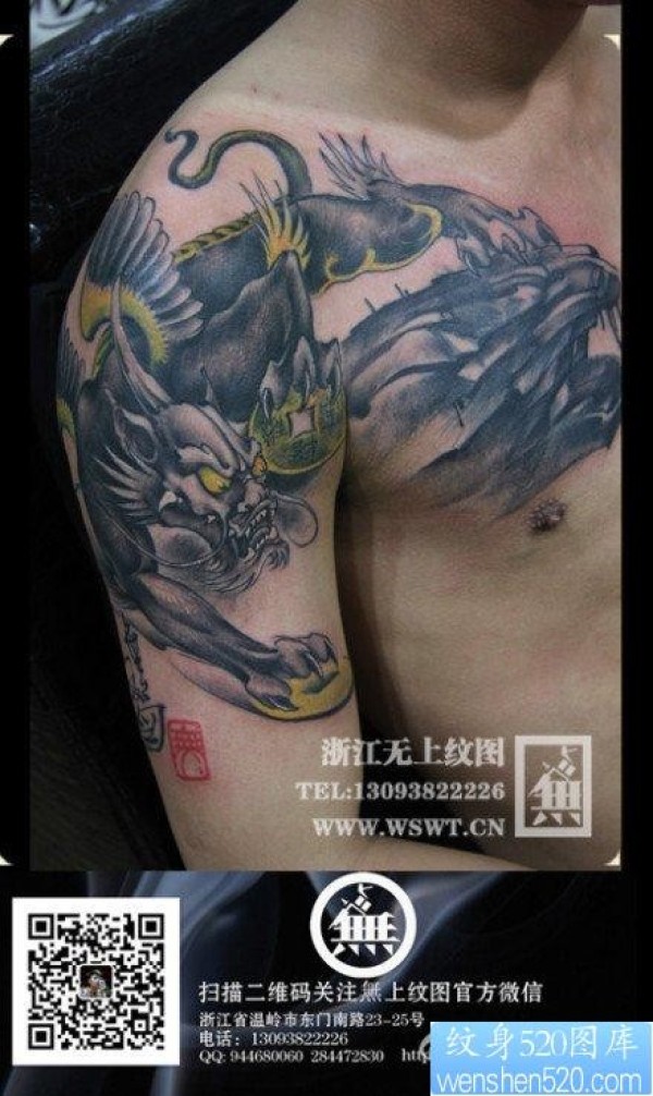 霸气很酷的披肩貔貅纹身图片_麒麟纹身图案大全_纹身图吧