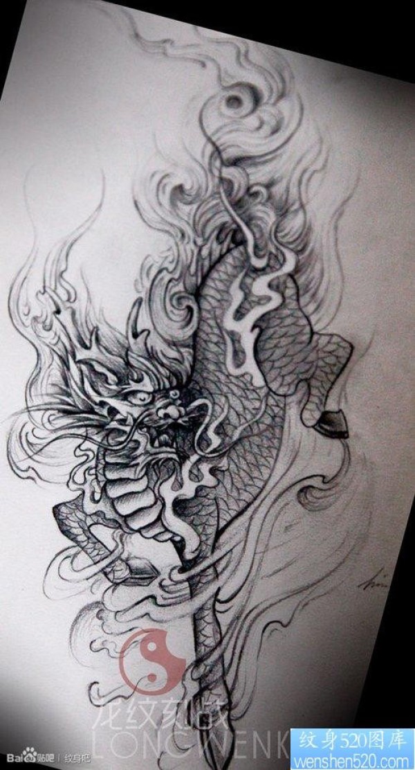龙纹身手稿_一组老传统黑灰龙手稿纹身图案