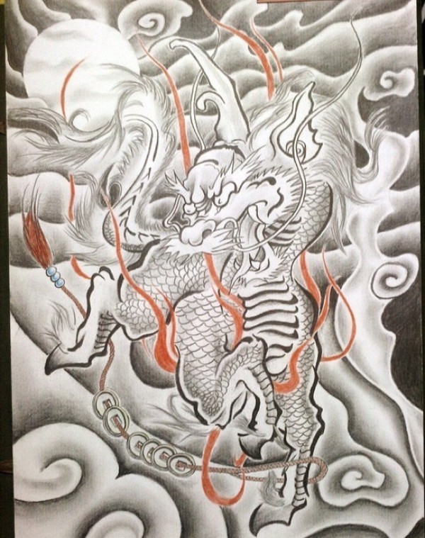 龙纹身手稿_一组老传统黑灰龙手稿纹身图案