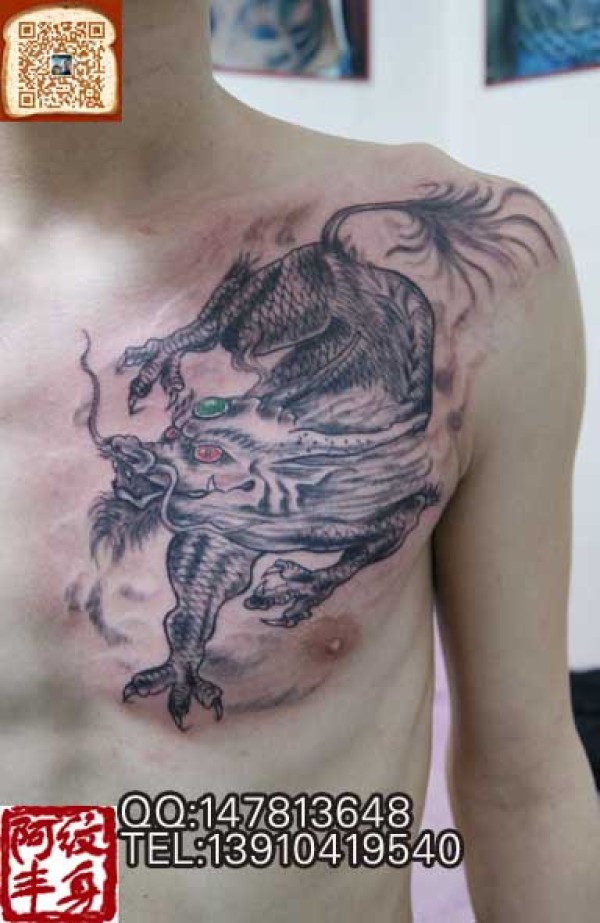 小伙子们最爱的胸部麒麟纹身图对于很多追求时_麒麟纹身图案大全_纹身图吧