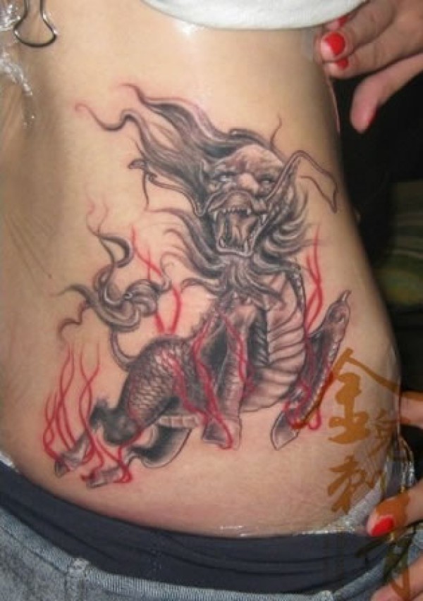 腰部素色的麒麟纹身图案鉴赏马上就完成的带火_麒麟纹身图案大全_纹身图吧