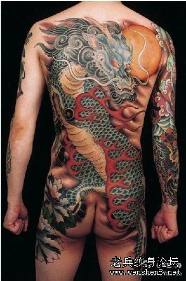 帅气满背彩色麒麟纹身图片图案(精品)_麒麟纹身图案大全_纹身图吧