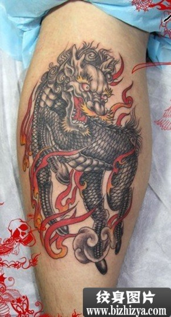 腿肚神兽火麒麟图案图片_麒麟纹身图案大全_纹身图吧