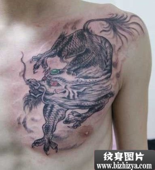 男人胸前神兽麒麟纹身图案图案图片_麒麟纹身图案大全_纹身图吧