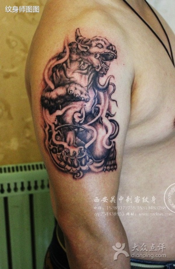 麒麟黑灰素描纹身 关中刺客 西安关中刺客纹身_麒麟纹身图案大全_纹身图吧