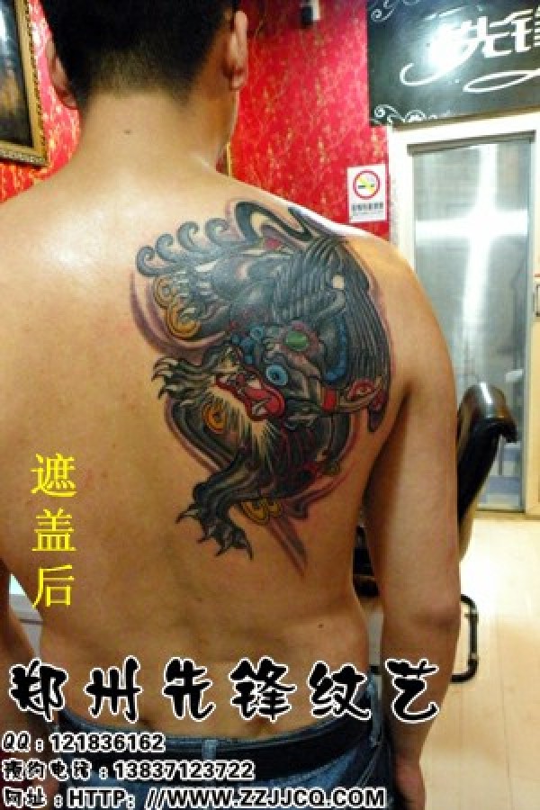 帅气满背彩色麒麟纹身图片图案(精品)_麒麟纹身图案大全_纹身图吧