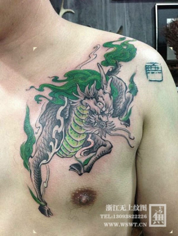 男生胸前时尚经典的麒麟纹身图案_麒麟纹身图案大全_纹身图吧