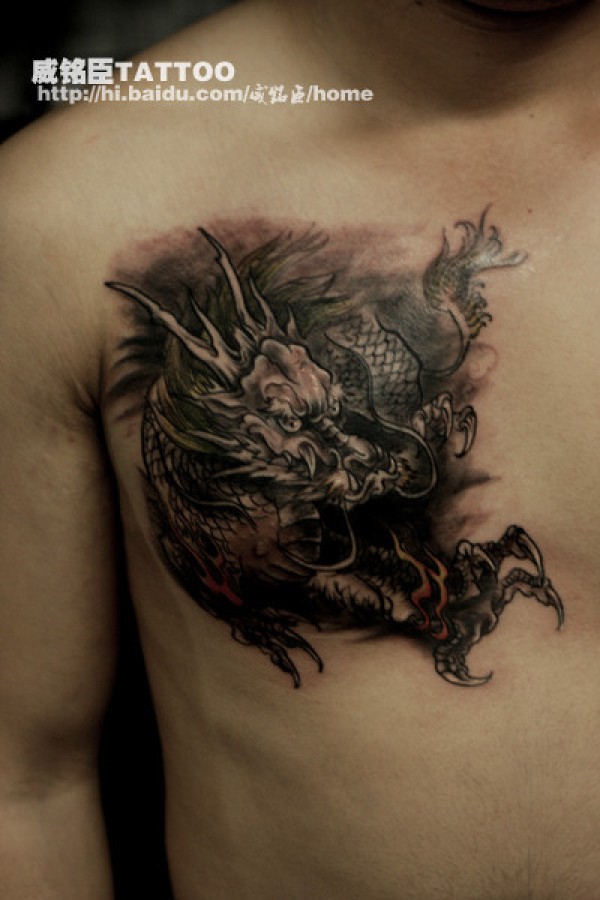 男人胸前时尚经典的麒麟纹身图案_麒麟纹身图案大全_纹身图吧