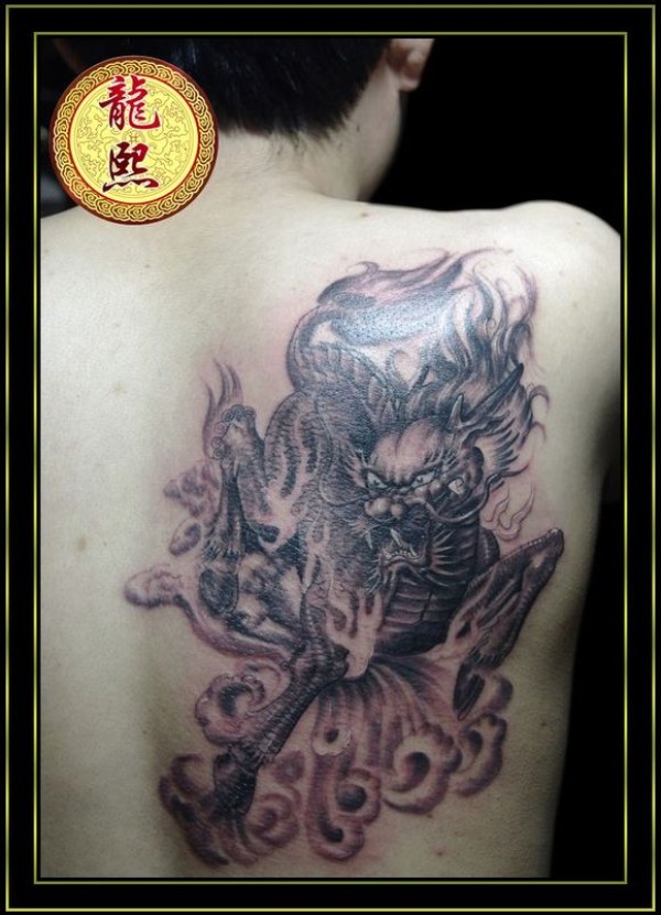 背部霸气的火麒麟纹身图片_麒麟纹身图案大全_纹身图吧