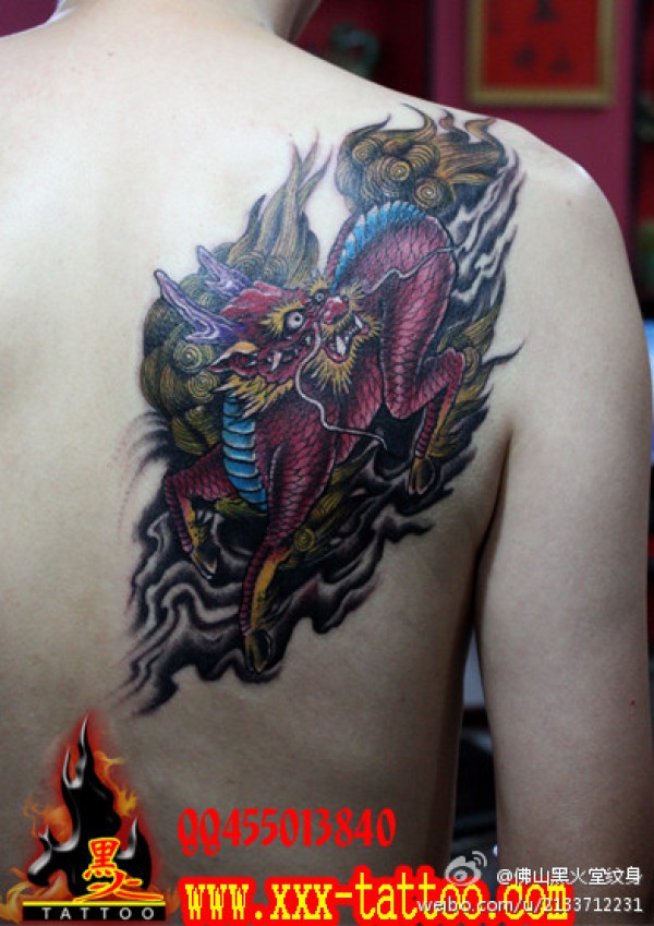 背部霸气的火麒麟纹身图片_麒麟纹身图案大全_纹身图吧