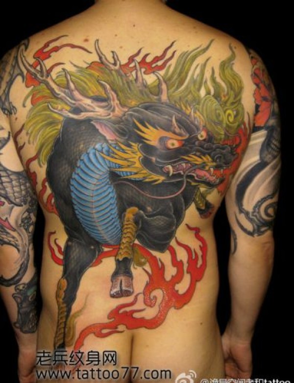 帅气满背彩色麒麟纹身图片图案(精品)_麒麟纹身图案大全_纹身图吧