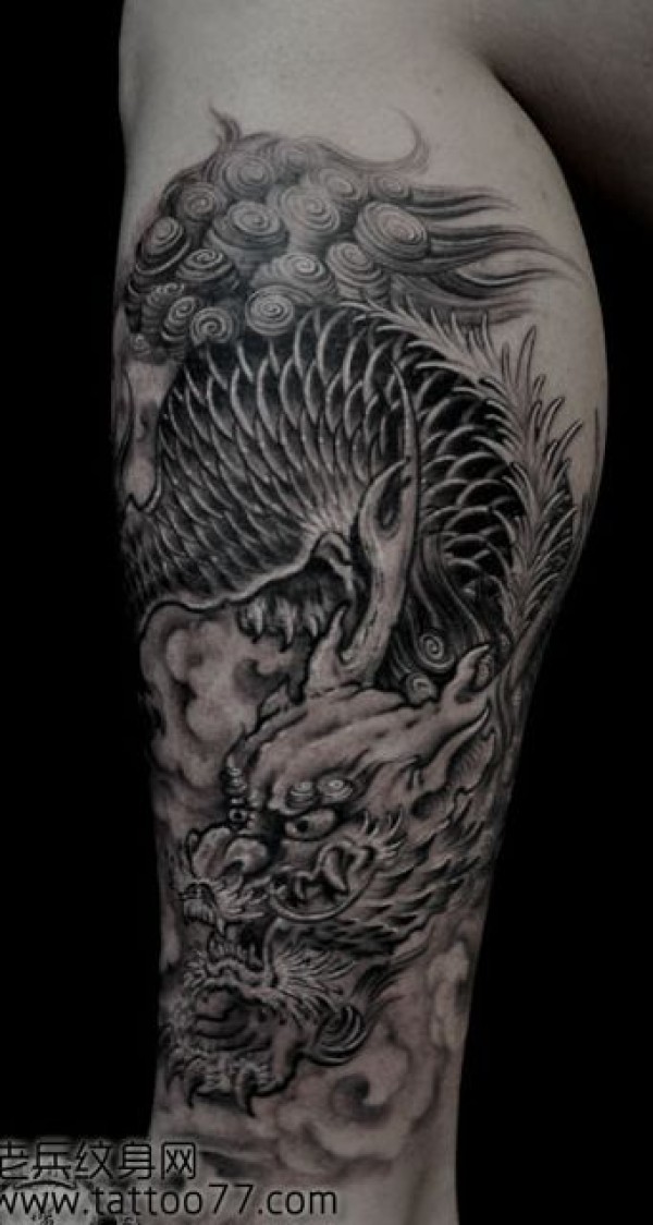 腿部超酷精美的麒麟纹身图案_麒麟纹身图案大全_纹身图吧