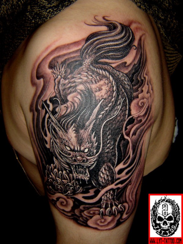湖北宜昌纹身店推荐一款手臂神兽麒麟纹身图案_麒麟纹身图案大全_纹身图吧