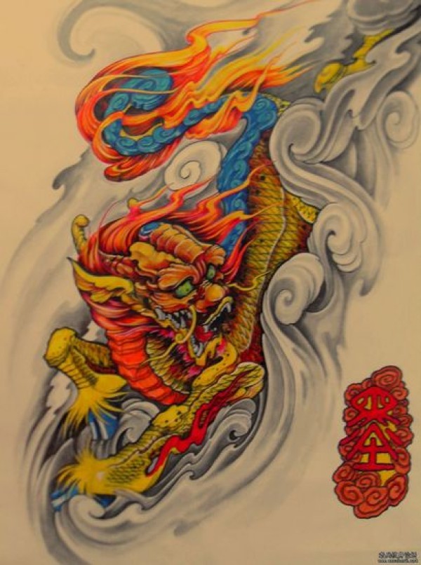 龙纹身手稿_一组老传统黑灰龙手稿纹身图案