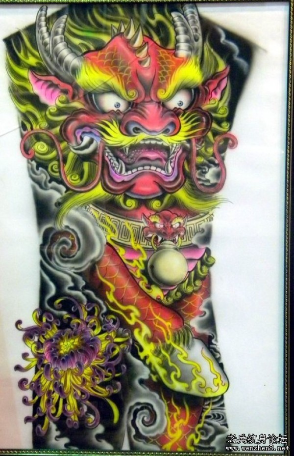 帅气满背彩色麒麟纹身图片图案(精品)_麒麟纹身图案大全_纹身图吧