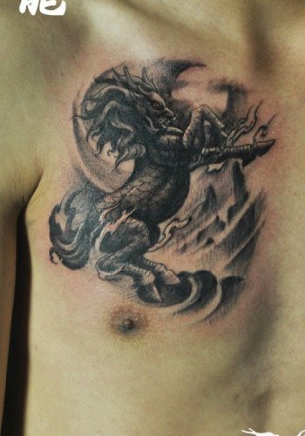 胸部超酷的招财神兽貔貅纹身图片_麒麟纹身图案大全_纹身图吧