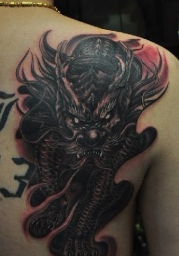 背部霸气的火麒麟纹身图片_麒麟纹身图案大全_纹身图吧