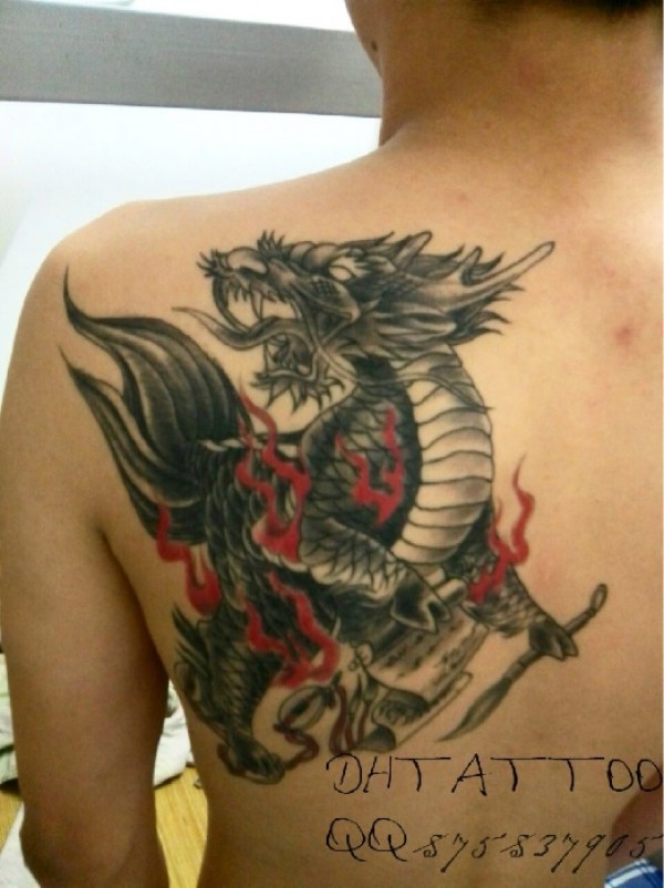 背部霸气的火麒麟纹身图片_麒麟纹身图案大全_纹身图吧