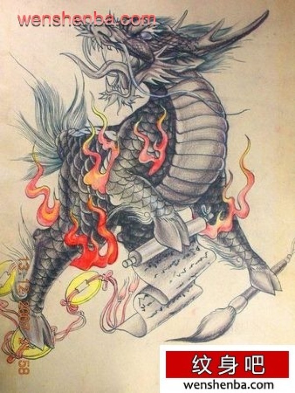 一款经典的麒麟纹身手稿素材_麒麟纹身图案大全_纹身图吧