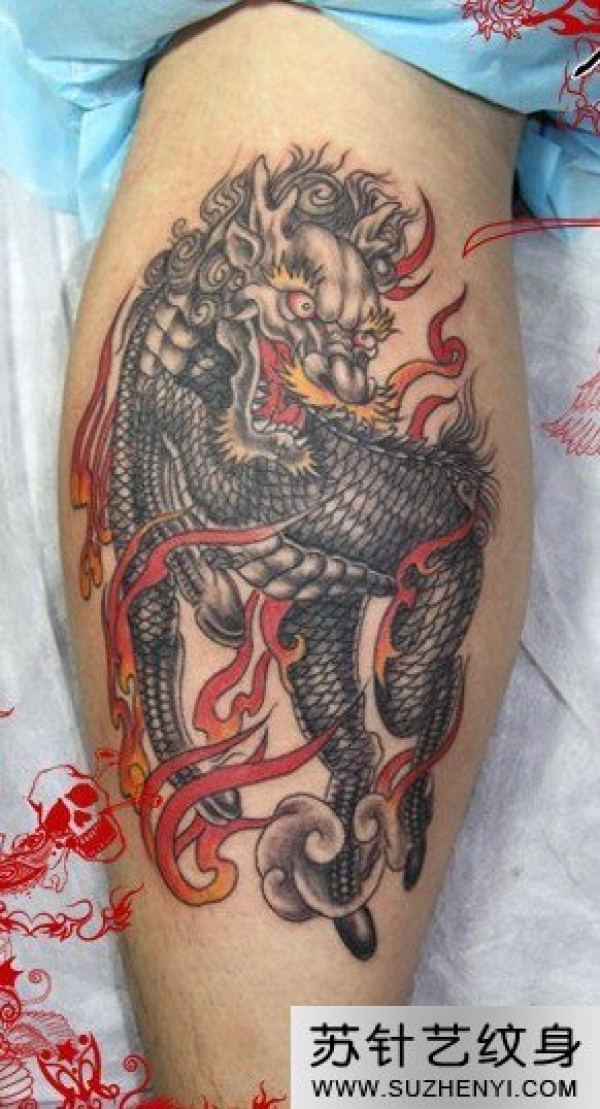 腿肚神兽火麒麟纹身_麒麟纹身图案大全_纹身图吧
