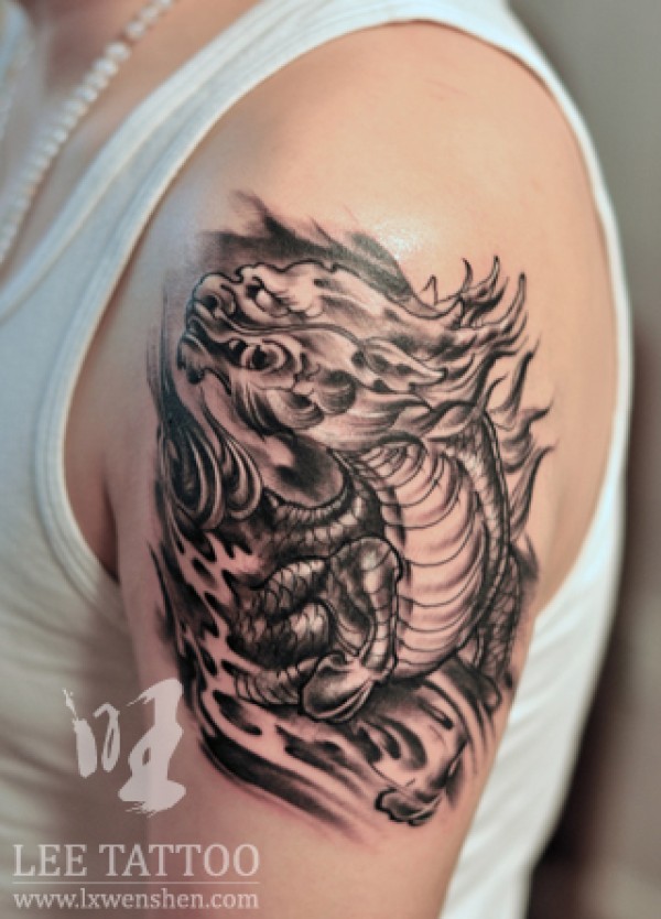 龙纹身手稿_一组老传统黑灰龙手稿纹身图案