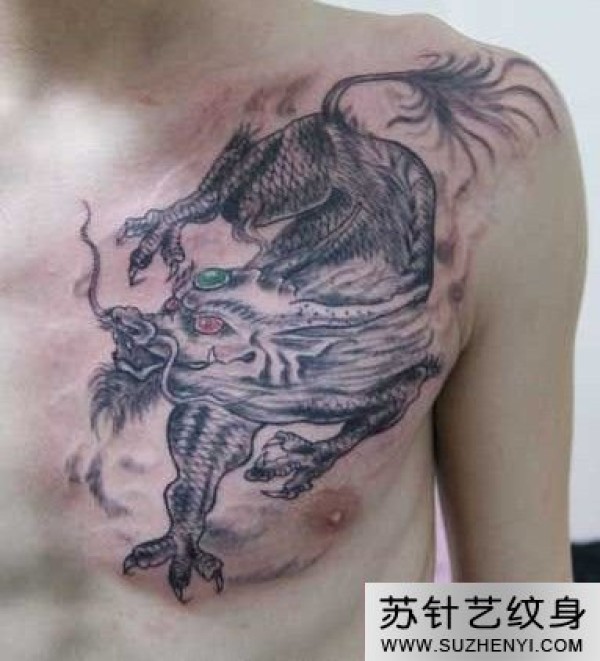 胸前神兽麒麟纹身_麒麟纹身图案大全_纹身图吧