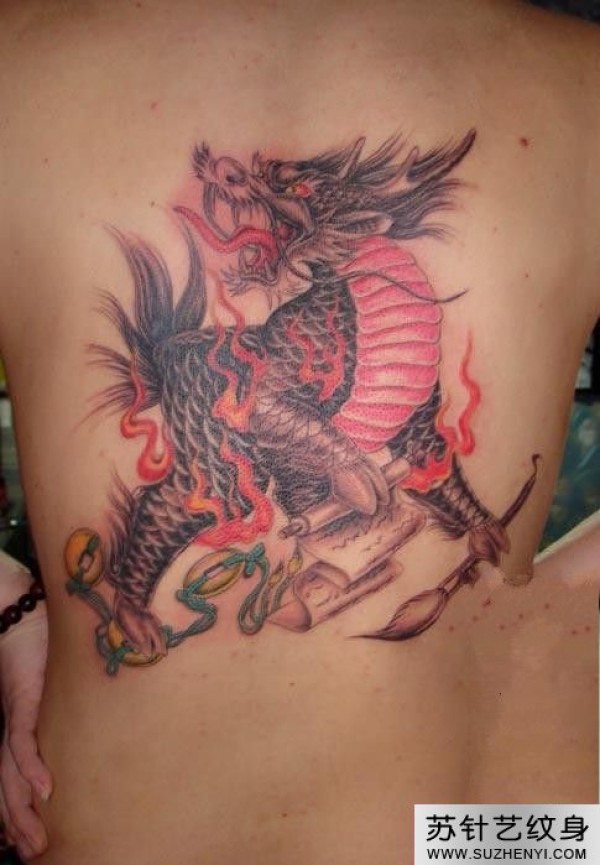 背部霸气的火麒麟纹身图片_麒麟纹身图案大全_纹身图吧