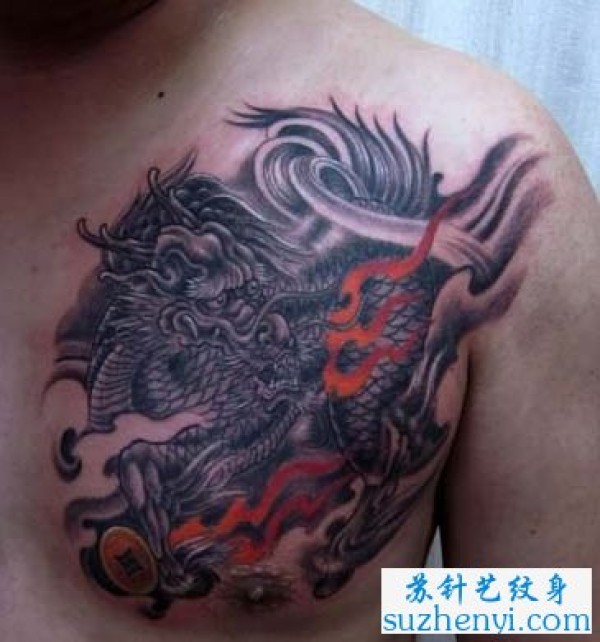 胸部超酷的招财神兽貔貅纹身图片_麒麟纹身图案大全_纹身图吧