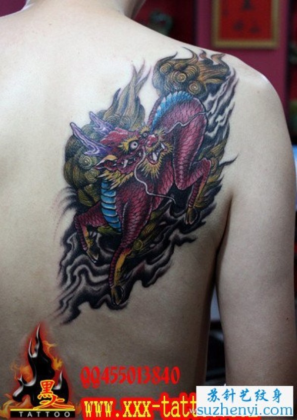 背部霸气的火麒麟纹身图片_麒麟纹身图案大全_纹身图吧