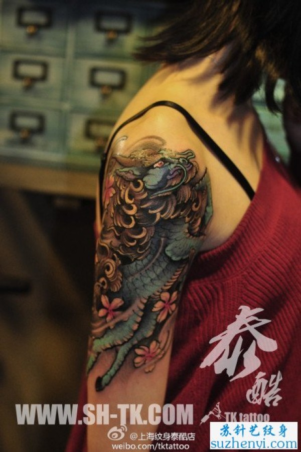 女生手臂的彩色麒麟纹身图案_麒麟纹身图案大全_纹身图吧