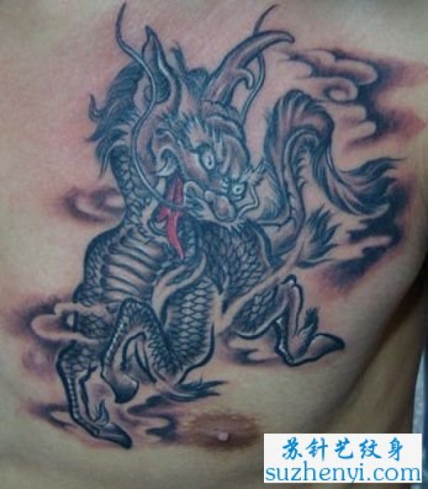 胸部神兽麒麟纹身图案纹身图片_麒麟纹身图案大全_纹身图吧