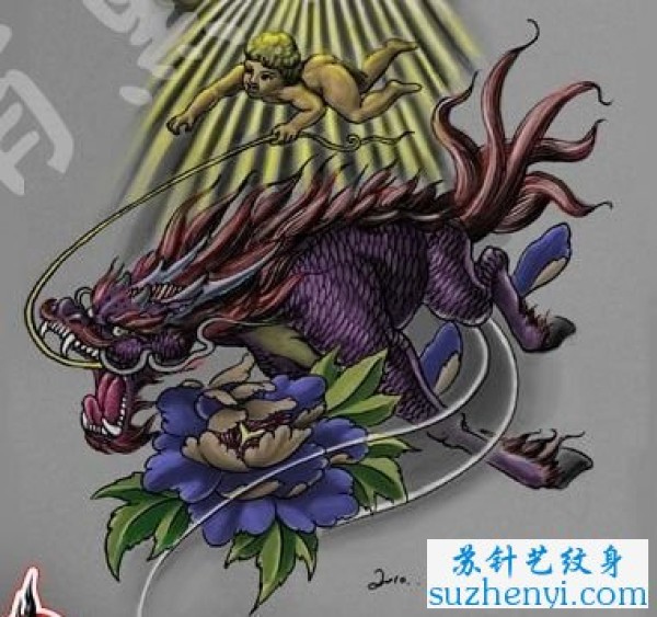 神兽麒麟欧美丘比特纹身图案纹_麒麟纹身图案大全_纹身图吧