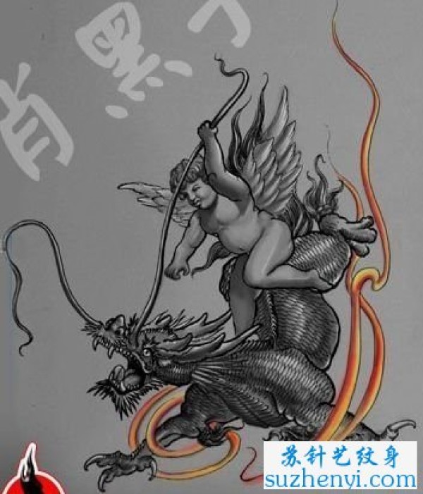 中西结合神兽麒麟天使丘比特纹_麒麟纹身图案大全_纹身图吧