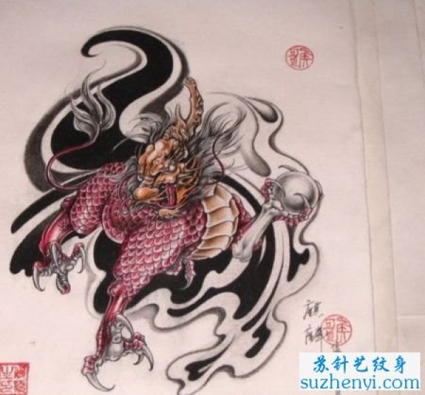 一款经典的麒麟纹身手稿素材_麒麟纹身图案大全_纹身图吧
