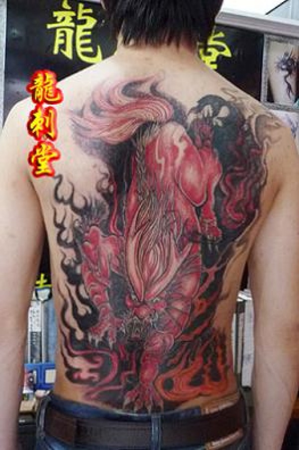 背部霸气的火麒麟纹身图片_麒麟纹身图案大全_纹身图吧