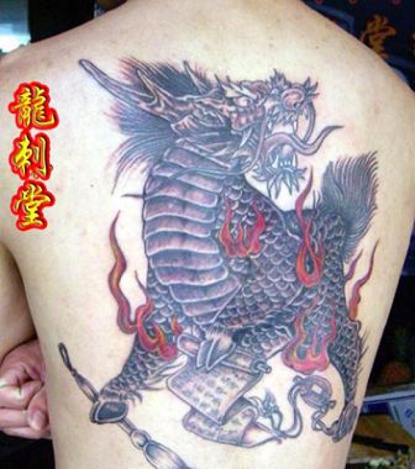 背部霸气的火麒麟纹身图片_麒麟纹身图案大全_纹身图吧