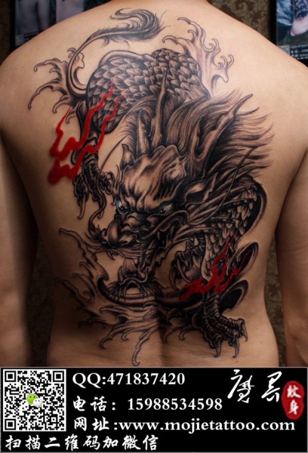 背部霸气的火麒麟纹身图片_麒麟纹身图案大全_纹身图吧