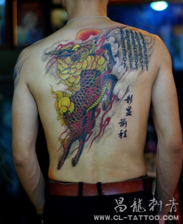 帅气满背彩色麒麟纹身图片图案(精品)_麒麟纹身图案大全_纹身图吧
