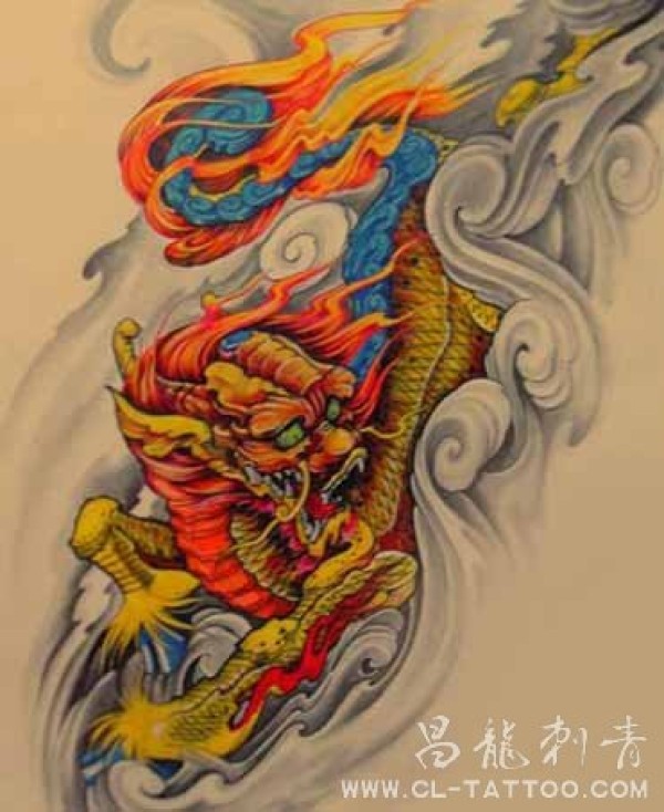 火麒麟纹身图案及其意义_麒麟纹身图案大全_纹身图吧